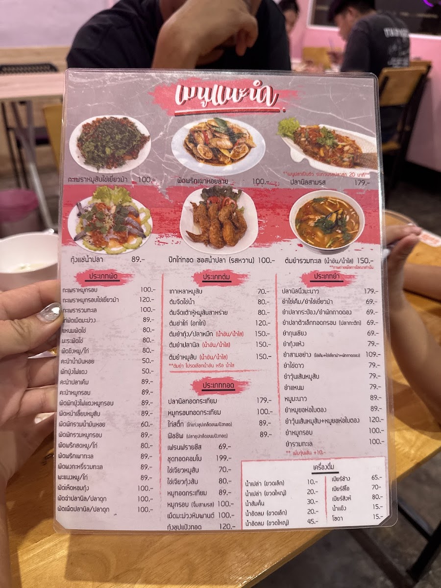 The star of the menu is the Stir-Fried Crispy Pork with Chili Paste (ผัดพริกเผาหมูกรอบ) at just THB 89. Infused with a slightly sweet chili paste and accompanied by fragrant onions and scallions, this dish exemplifies the bold flavors that Thai cuisine is famous for.